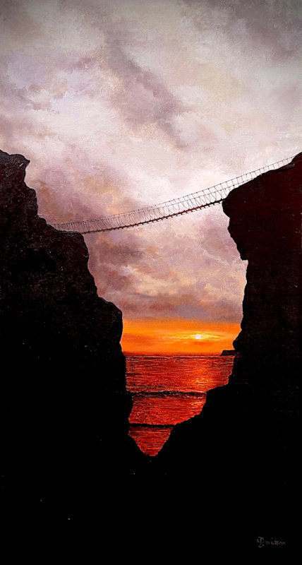 BUY NOW ONLINE!Heavily textured acrylic painting of Belfast’s cranes at sunset on canvas board. Size: 20 x 25cm. Price: £425 / £42.50 per month.