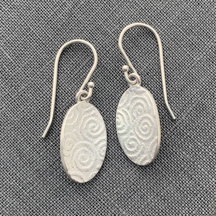 BUY NOW ONLINE!CPM167: Oval shaped earrings with 18k on silver. Textured with into the metal surface. Price: £100 / £10 per month.
